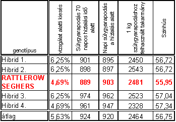 Amit érdemes észrevenni, hogy a RATTLEROW SEGHERS sertései, ellentétben a többi HVV teszten résztvevő hibrid hízójával a 70 napos hízlalási időszakot követően tovább növelték a napi testtömeggyarapodásukat, míg a többi hibrid növekedése lelassult!